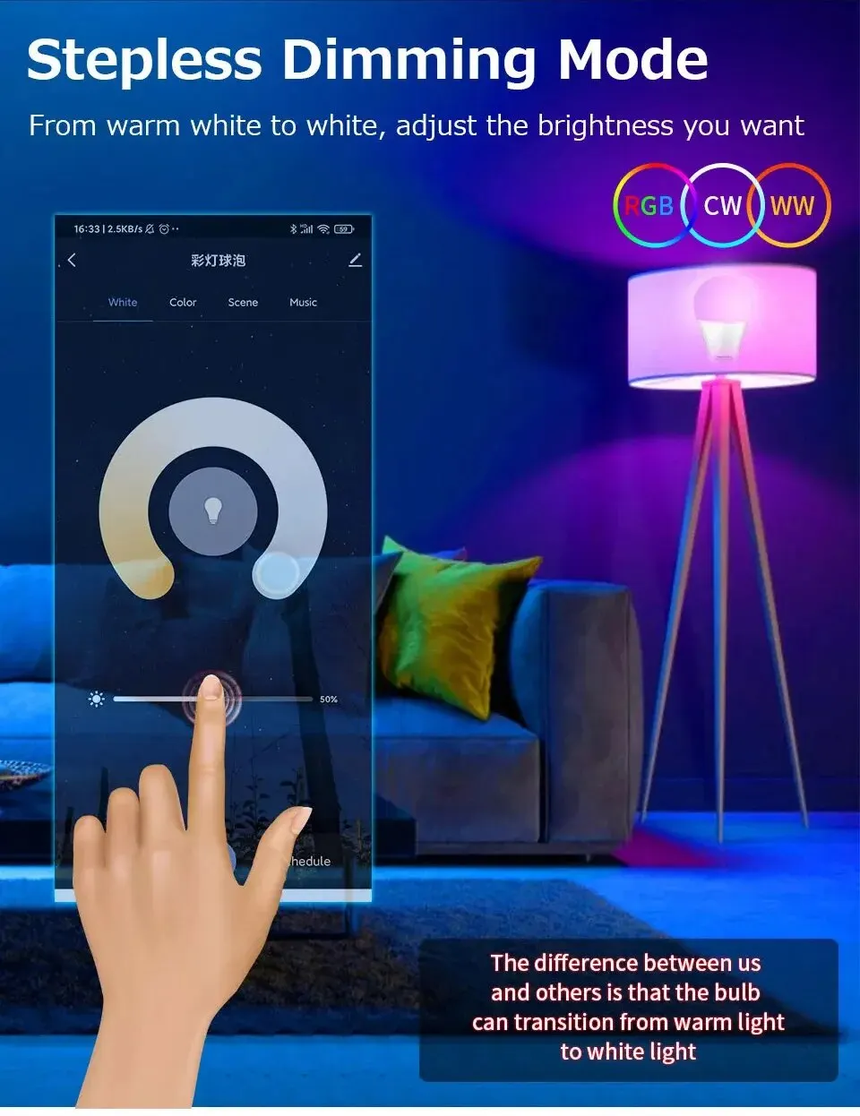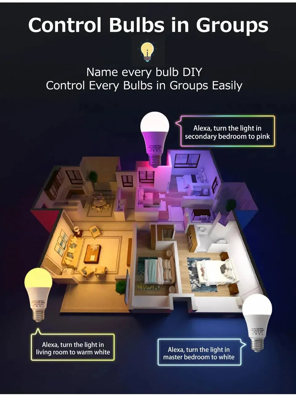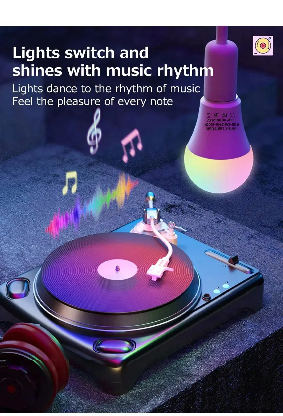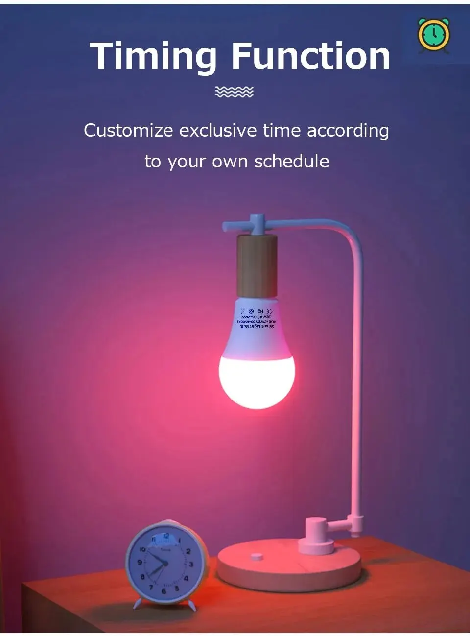 Tuya Bluetooth WiFi Smart Light Bulbs E27 LED Lamp RGB Smart Bulb 15W Smart Life APP Voice Control With Alexa Alice Google Home